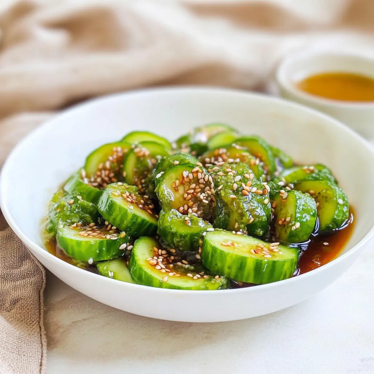 Flavor Explosion: Each bite of this Asian cucumber salad bursts with savory, tangy goodness, thanks to a delightful sesame soy dressing that truly elevates simple ingredients.