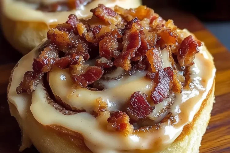 Indulge in these Bourbon Maple Bacon Cinnamon Rolls, a perfect blend of sweet and savory for an unforgettable breakfast experience.