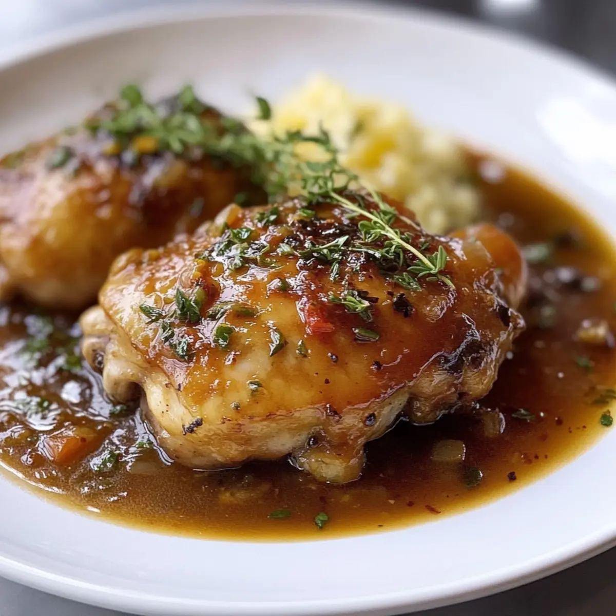 - Return the browned chicken thighs to the pot and simmer gently for 1 hour. Cover and let the flavors meld.