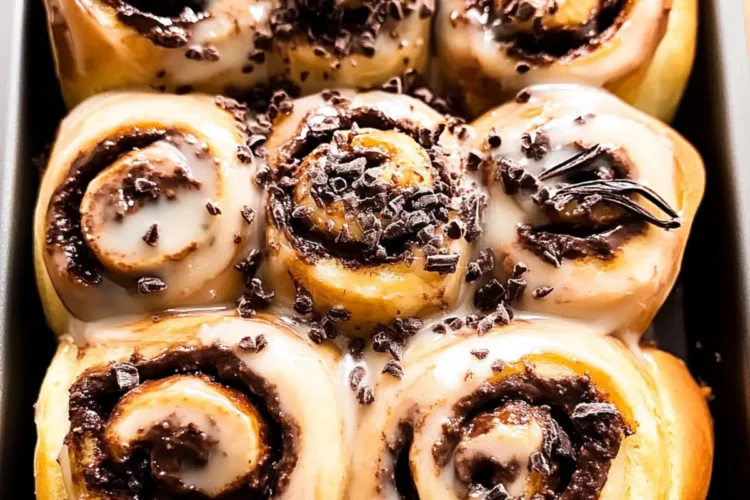 Once the Chocolate Nutella Rolls are warm and slightly cooled, drizzle the vanilla bean glaze generously over the top, allowing it to seep into the rolls. If desired, sprinkle with chopped chocolate for added flavor and texture. Your mouthwatering Chocolate Nutella Rolls are now ready to be served!