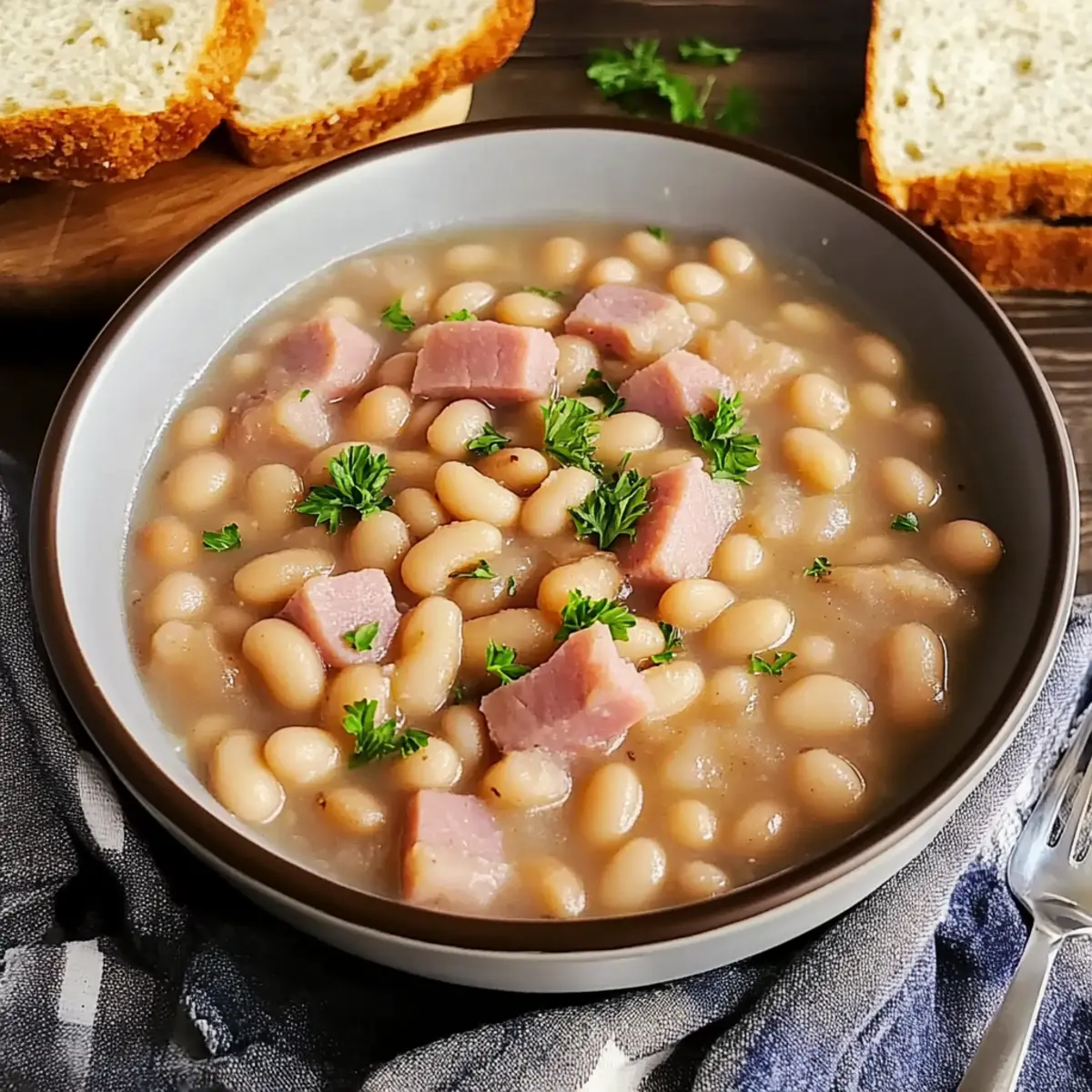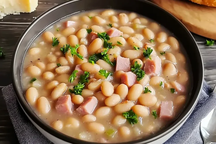 Rich, Smoky Goodness: The tender ham melds beautifully with the beans, creating a deliciously hearty soup that warms you from the inside out.