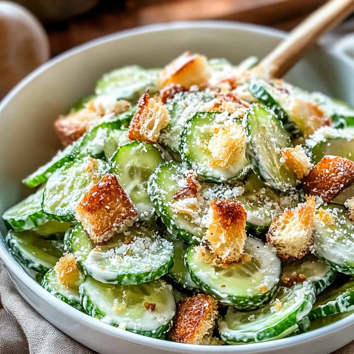 As I lazily rummaged through my fridge one sweltering summer afternoon, a bright idea struck me: why not elevate the classic Caesar salad with a refreshing twist? Enter my Cucumber Caesar Salad! This vibrant dish combines crisp, thinly sliced cucumbers with a creamy dressing that’s tangy and satisfying, all topped off with crunchy croutons. Not only does this recipe offer a healthier alternative to the traditional version, but it also comes together in a matter of minutes—perfect for a quick lunch or an impressive side at your next gathering. Whether you’re a passionate home chef or just looking for something lighter and delicious, this salad will have you smiling with every bite. Curious about how to whip this up and impress your loved ones? Let’s dive in!