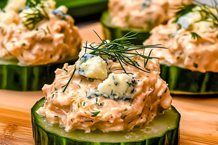 Freshness in Every Bite: The crisp cucumber rounds serve as the perfect canvas for a flavorful chicken salad, ensuring each nibble bursts with freshness.