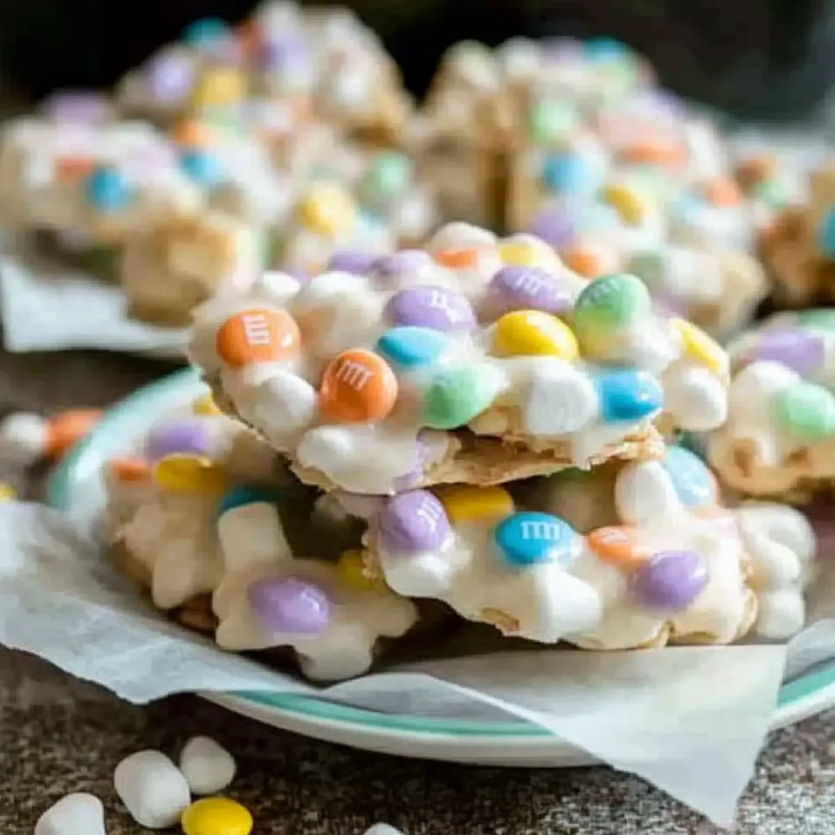 3. Gently fold in the pastel M&M’s and mini fruit-flavored marshmallows into the cooled mixture. Stir carefully to combine.