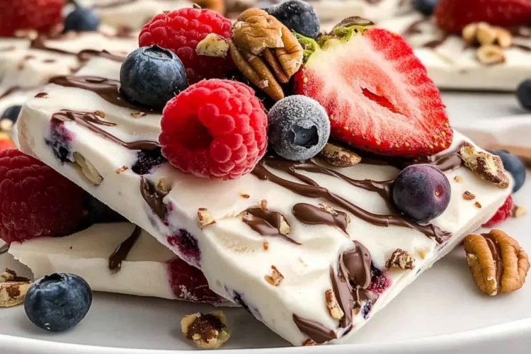 Frozen Yogurt Bark is a refreshing, guilt-free dessert combining Greek yogurt, berries, and dark chocolate.