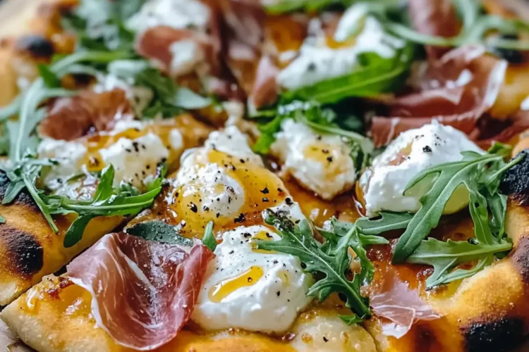 This Honey Burrata Pizza Recipe combines creamy burrata and savory prosciutto, elegantly drizzled with honey for a deliciously gourmet experience.