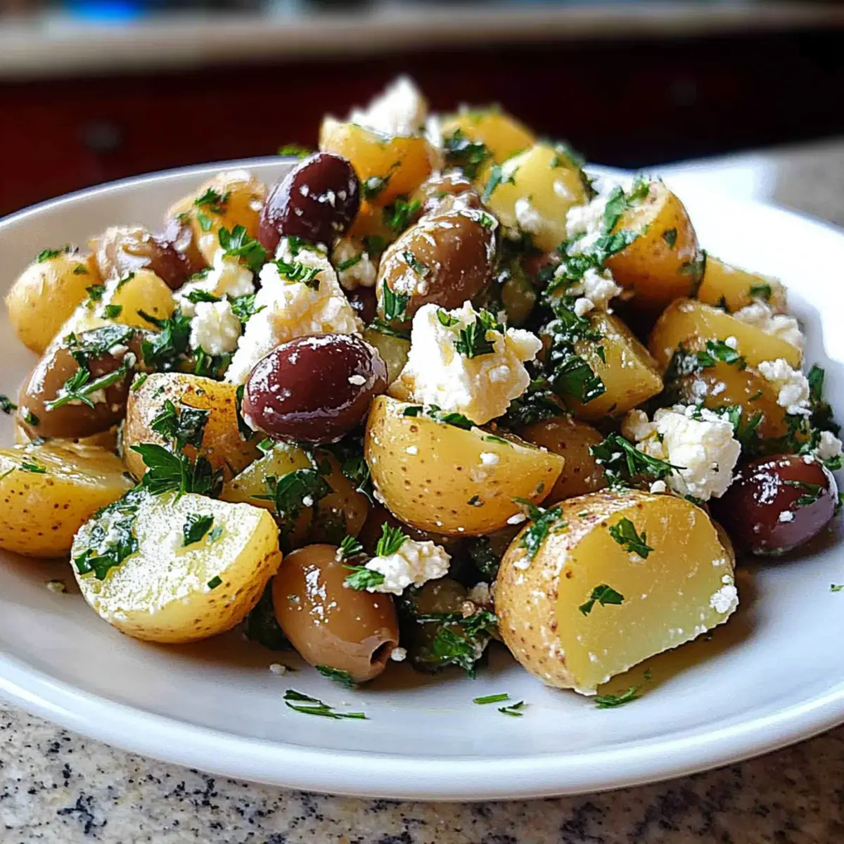 Flavorful and fresh, this Mediterranean potato salad is a game changer! Perfectly balanced, the briny olives and creamy feta create a flavor explosion in every bite. Quick preparation means you can whip this up in no time, making it ideal for picnics or weeknight dinners. Versatile enough to be a side dish or a light meal, it pairs brilliantly with grilled meats or crusty bread. Plus, it keeps well—prepare it a day in advance for even bolder flavors!