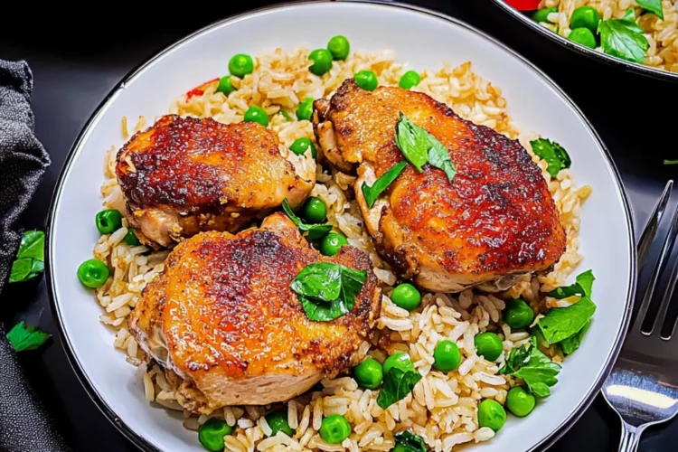 Nestle the browned chicken thighs on top of the rice in the pot, skin-side up. Cover the pot tightly with a lid and let it simmer on low heat for 25–30 minutes. The chicken will release its juices, helping to infuse the rice with flavor. Check that the rice is tender and the chicken is cooked through, reaching an internal temperature of 165°F.