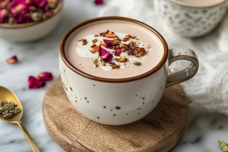 Luxurious indulgence: This Rose Cardamom Tea Latte invites you to enjoy a moment of elegance with every sip.