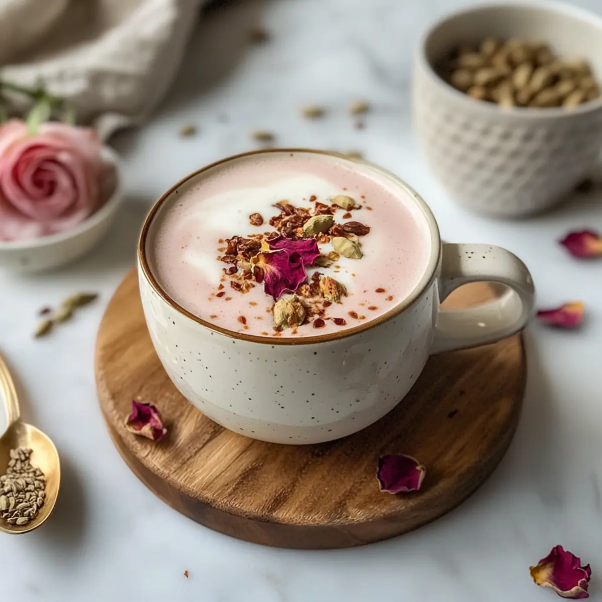 Craft this comforting Rose Cardamom Tea Latte and dive into a warm embrace of flavors!