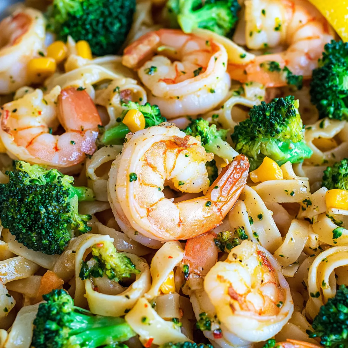 Flavor-Packed Shrimp Pasta with Lemon and Veggies Delight