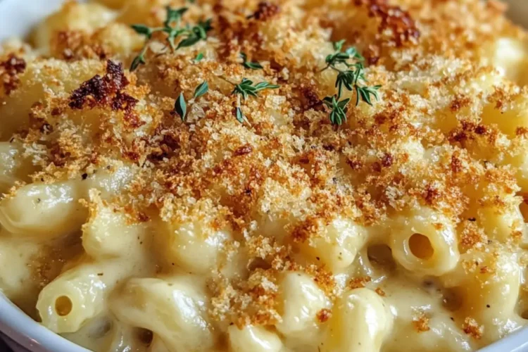 Sprinkle the breadcrumb mixture evenly over the macaroni and cheese. Place the baking dish in a preheated oven at 350°F (175°C) and bake for 20 minutes, or until the top is golden brown and bubbly. The visual cue of a crispy topping will excite everyone at the dinner table, making your smoked gouda mac & cheese both delicious and inviting.
