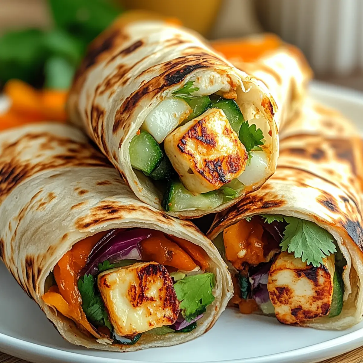 Customizable Delight: Not just vegetarian, these wraps can accommodate every diet; swap halloumi for grilled chicken or tofu, and choose your favorite vegetables for a personalized touch.