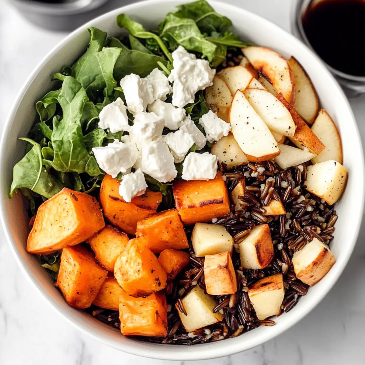 Feta adds a different dimension to the bowl and pairs beautifully with the sweet potatoes and apples. -